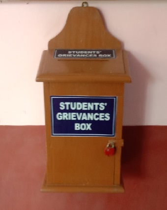 The Grievance Drop Box is installed in the first floor near the Vice Principal(evening) Office in the college main building. A student has to submit his/her grievance in writing in the prescribed grievance form. The Grievance Form can be downloaded by clicking on the download button given at the bottom of this page. The grievance form, duly filled, can be directly dropped in the Grievance Drop Box. After the receipts of grievances, the Grievance Committee shall take up the matter with the department concerned or the management for resolving them. Once grievances are resolved, the final report and resolution will be handed over to the Principal, who is the chairperson, for further advice or action.