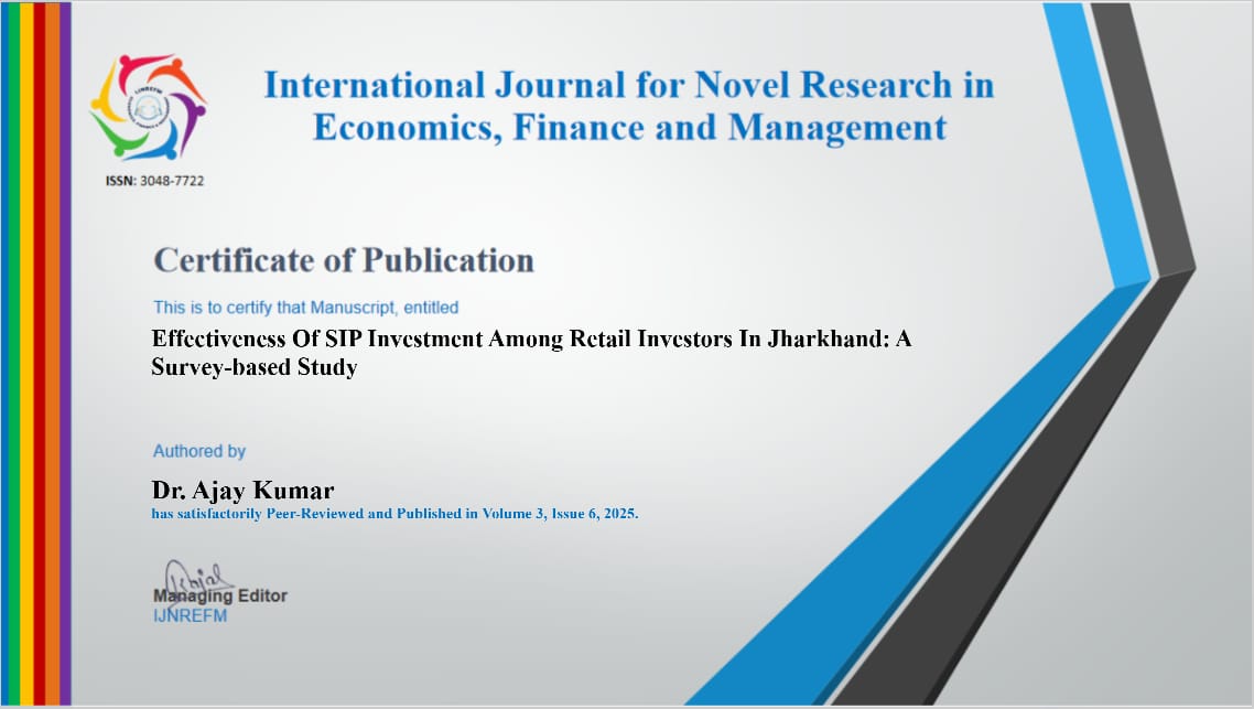 Pubished Research Papers: Effectiveness of SIP Investment Among Retail Investors in Jharkhand (A Survey-Based Study) |